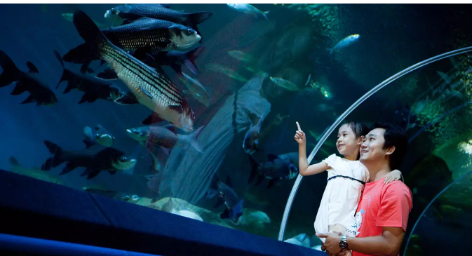 가장 인상적인 경험 중 하나는 거대한 아크릴 터널을 통과하는 것입니다. 이 터널은 길이가 105미터에 달하며, 방문객들은 상어와 가오리들이 바로 머리 위에서 유영하는 모습을 감상할 수 있습니다. 이 순간은 마치 바다 속에 들어간 듯한 착각을 불러일으키며, 가족 단위 방문객들에게도 큰 감동을 줍니다.