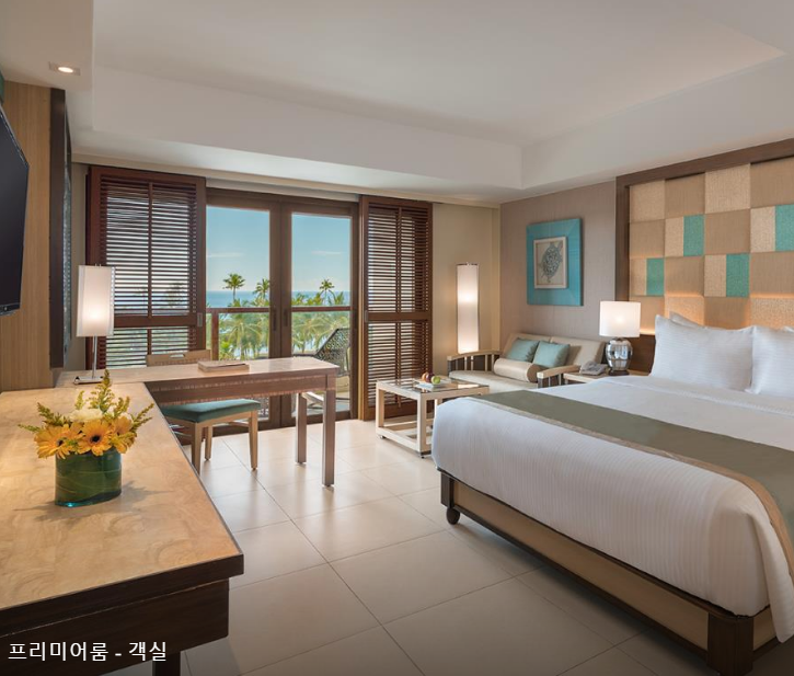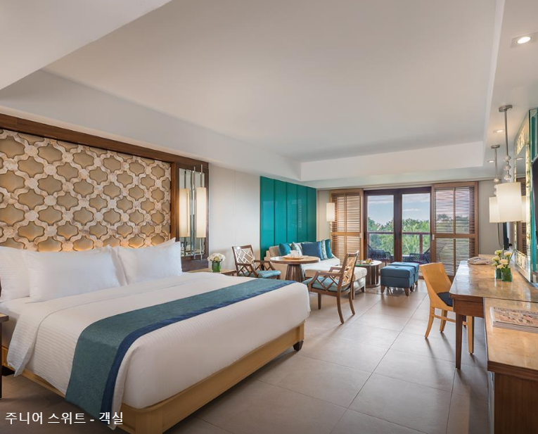 리조트는 다양한 숙소 옵션을 제공하여 모든 여행자의 필요를 충족시킵니다. 고급스러운 풀빌라부터 오션뷰 스위트룸까지, 각 객실은 세련된 인테리어와 현대적인 시설을 갖추고 있어 편안한 휴식을 제공합니다. 특히, 일부 객실에서는 발코니를 통해 바다의 절경을 감상할 수 있어 특별한 경험을 선사합니다.