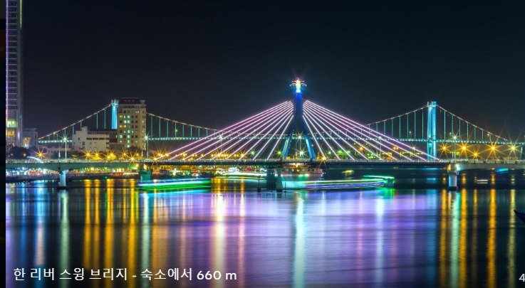 다낭의 한강 옆에 있어 뷰도 죻고 호텔앞에 택시도 많고 무엇보다 야경이 아름다운 곳입니다. 근처 한시장과 콩카페, 포홍쌀국수 마트 등 즐길거리, 먹거리들도 도보로 15분거리 안에 있어 다낭을 둘러보기 좋습니다. 호텔컨디션도 좋고 수영장, 프리미어 빌리지 전용비치 등도 즐기고 가족 또는 일행과 밤에 아름다운 야경을 보며 하루를 마감하는 것도 좋습니다.