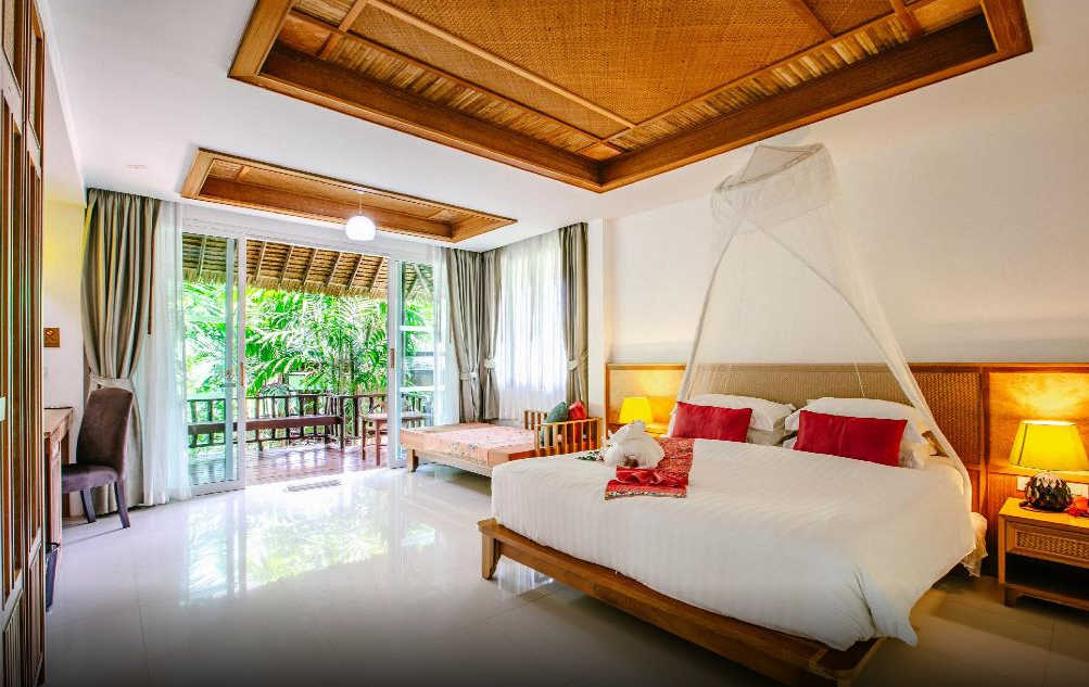리조트의 객실은 전통적인 태국 건축양식과 현대적인 디자인이 조화를 이루고 있습니다. 각 객실은 넓고 아늑하며, 자연광이 가득 들어오는 큰 창문을 통해 아름다운 정원의 풍경을 감상할 수 있습니다. 또한, 개인 발코니에서 차 한 잔의 여유를 즐기며 일몰을 감상하는 것도 이곳의 큰 매력 중 하나입니다. 객실 내에는 최신 편의 시설이 마련되어 있어 편안한 휴식을 제공합니다.