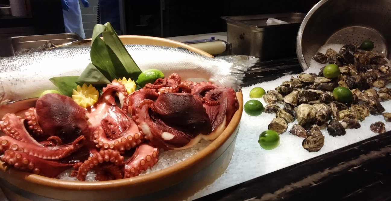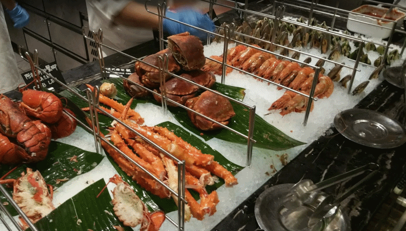 이곳의 뷔페는 특히 신선한 해산물 코너로 유명합니다. 현지에서 공수한 싱싱한 조개, 새우, 그리고 다양한 생선들이 얼음 위에 정갈하게 배열되어 있어, 바다의 신선함을 그대로 느낄 수 있습니다. 해산물을 좋아하는 이들에게는 천국과도 같은 경험이 될 것입니다. 또한, 다양한 스시와 사시미 코너에서는 일본의 정통 요리를 맛볼 수 있어, 색다른 미식 여행을 제공합니다.