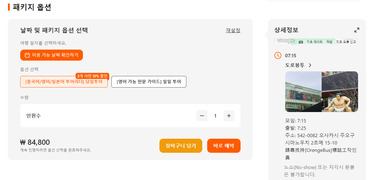 출발([중국어/영어/일본어 투어리더] 당일투어 기준)