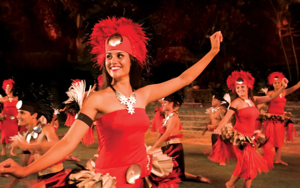 하와이 현지 마을 방문해 현지인들과 인사를 나누고 정통 폴리네시안 루아루에서 호화롭고 맛있는 현지음식이 가득한 뷔페 저녁식사를 하며 하와이에서 유명한 하쇼를 관람하세요 ~~