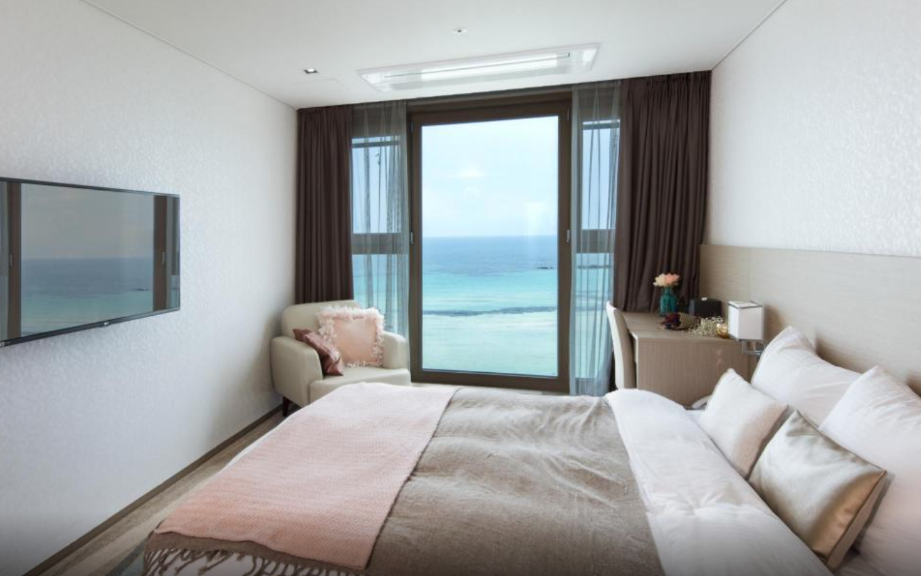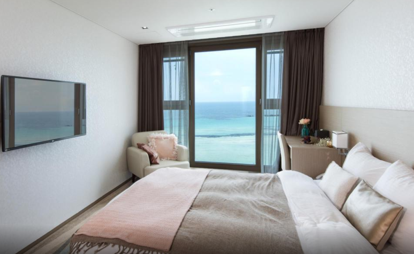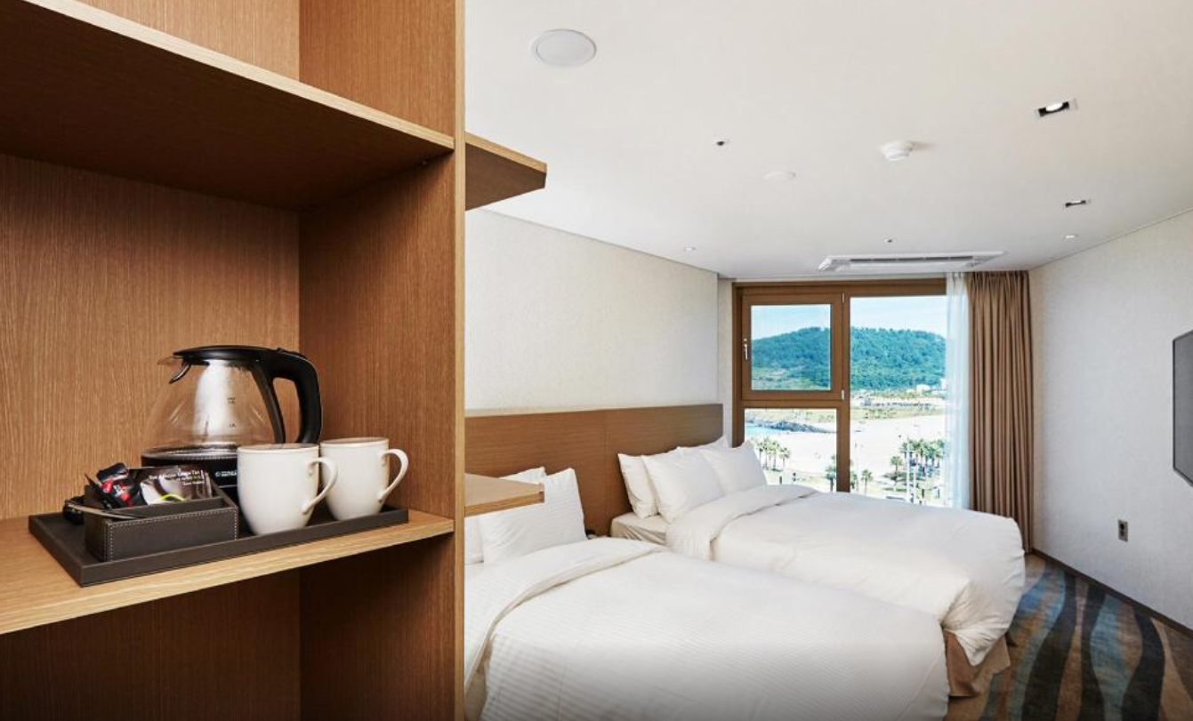 함덕해수욕장 바로 앞에 위치한 호텔이며, 디럭스 룸 이용하시면 바다에 물이 가득 차올랐을 때 마치 바다 위에 누워있는 듯한 기분을 감상하실 수 있습니다!! 숙소 내부시설 모두 청결하며, 조식도 매일 조금씩 바뀌어서 즐겁게 식사하실 수 있습니다. 다만 밤늦게 바다를 보러나온 사람들이 가끔 폭죽을 쏘아올릴 때가 있어 창문을 열어두면 다소 소음이 발생하니 그 점만 유의한다면 최고의 호텔이라고 할 만 합니다!