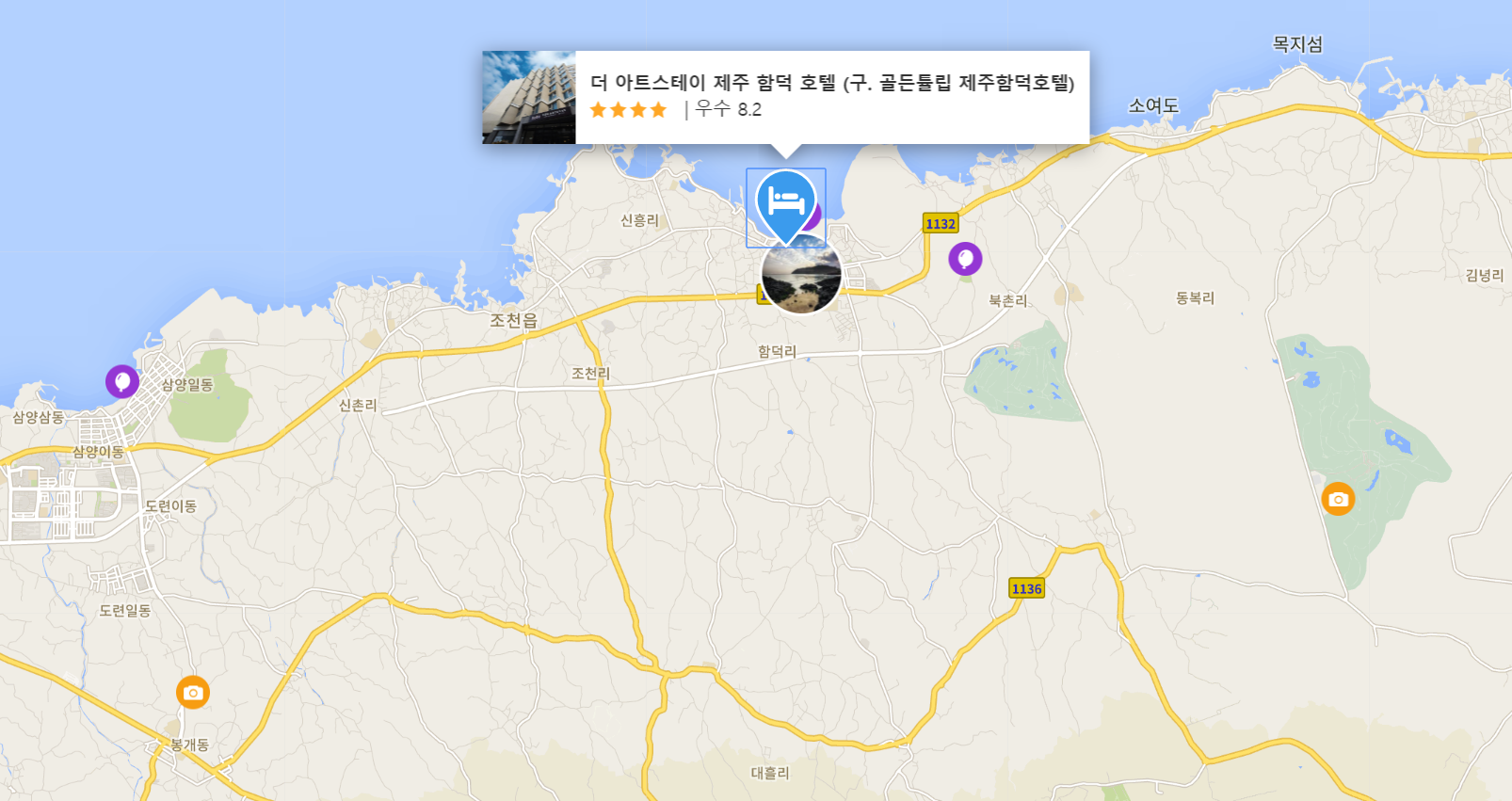 조천에 있는 더 아트스테이 제주 함덕 호텔 (구. 골든튤립 제주함덕호텔) (The Artstay Jeju Hamdoek - Hotel)은 본격적인 제주도 여행 시작을 위한 이상적인 장소입니다. 이 곳에서 생동감 넘치는 도시의 많은 것을 최대로 즐길 수 있습니다. 더 아트스테이 제주 함덕 호텔 (구. 골든튤립 제주함덕호텔) (The Artstay Jeju Hamdoek - Hotel)은 도시의 필수 관광 명소에 쉽게 접근할 수 있는 편리한 위치를 자랑합니다.