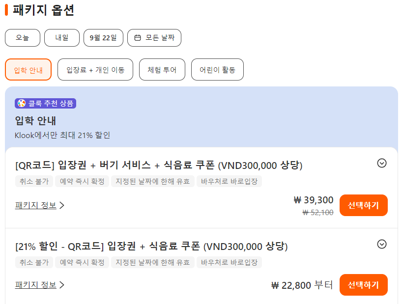 남호이안 빈펄랜드 입장권은 클룩사이트에서 쉽게 예약하실 수 있으며, 이메일, 전화번호, 카카오톡, 네이버, 구글, 애플, 페이스복 등으로 간편하게 회원가입하고 이용하실 수 있습니다. 가격은 변동될 수 있으므로 예약시 다시 확인하고 이용하세요~