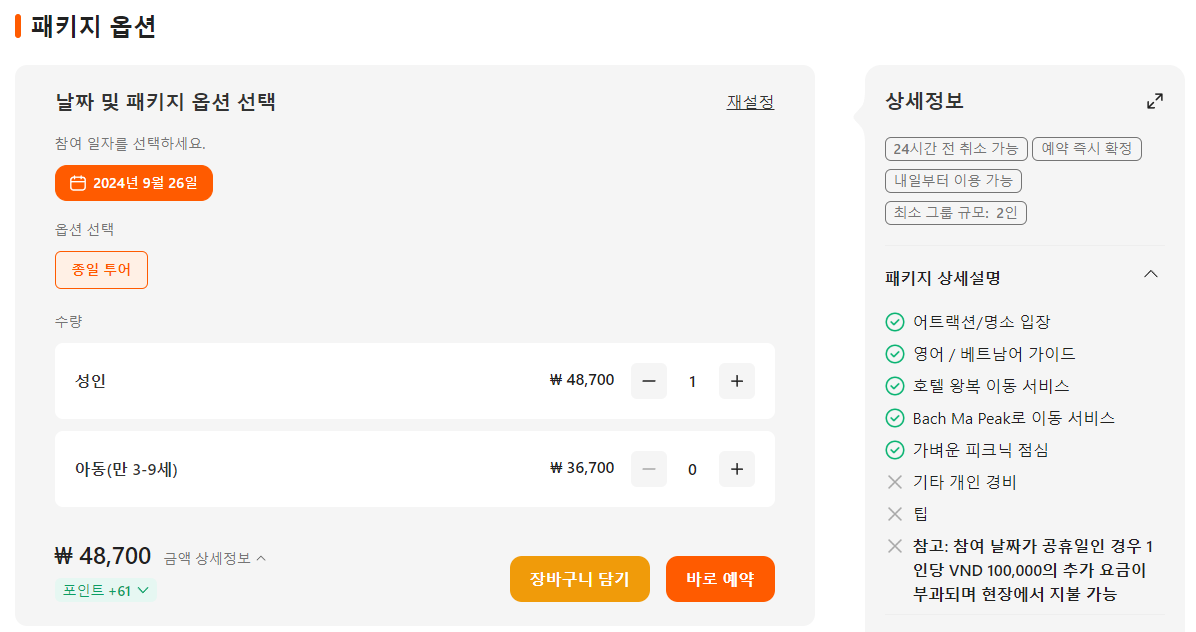 참고: 참여 날짜가 공휴일인 경우 1인당 VND 100,000의 추가 요금이 부과되며 현장에서 지불 가능