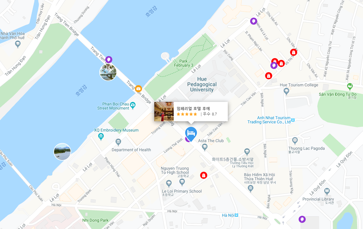 베트남 후에자유여행에 추천하는 TTC 임페리얼 호텔 (TTC Imperial Hotel)는 후에 시내를 여행하기 좋은 위치와 저렴한 가격에 직원분들도 친절하고, 강가쪽에 위치하여 전망도 좋은 호텔입니다.