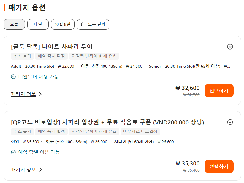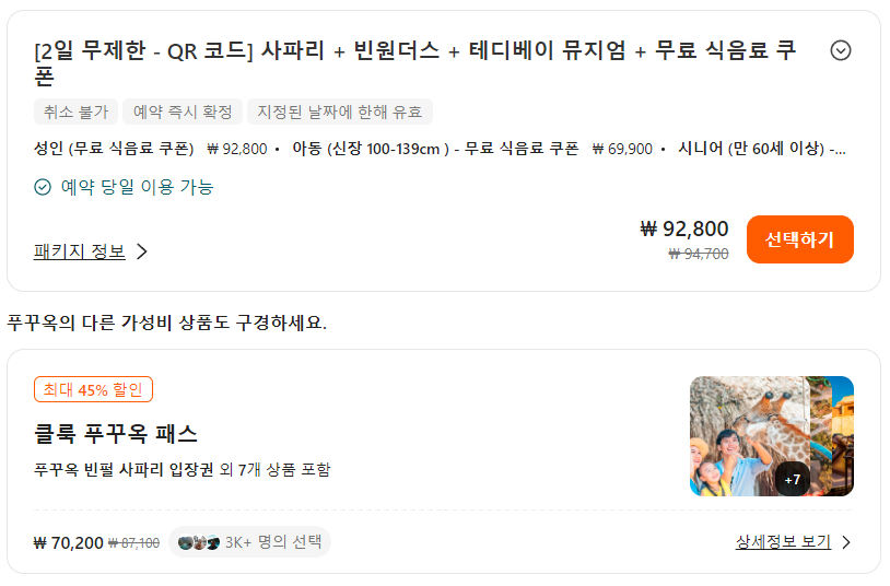 푸꾸옥 빈펄 사파리 입장권은 클룩사이트에서 쉽게 예약하실 수 있으며, 이메일, 전화번호, 카카오톡, 네이버, 구글, 애플, 페이스복 등으로 간편하게 회원가입하고 이용하실 수 있습니다. 가격은 변동될 수 있으므로 예약시 다시 확인하고 이용하세요~