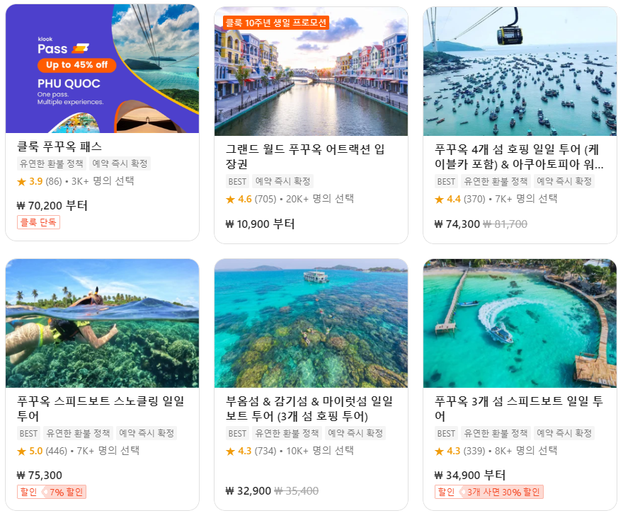 | 푸꾸옥여행코스 / 푸꾸옥의 코랄파크, 마이룻섬, 감기섬 코스의 스피드보트 호핑투어 (0) | 2024.09.08 |