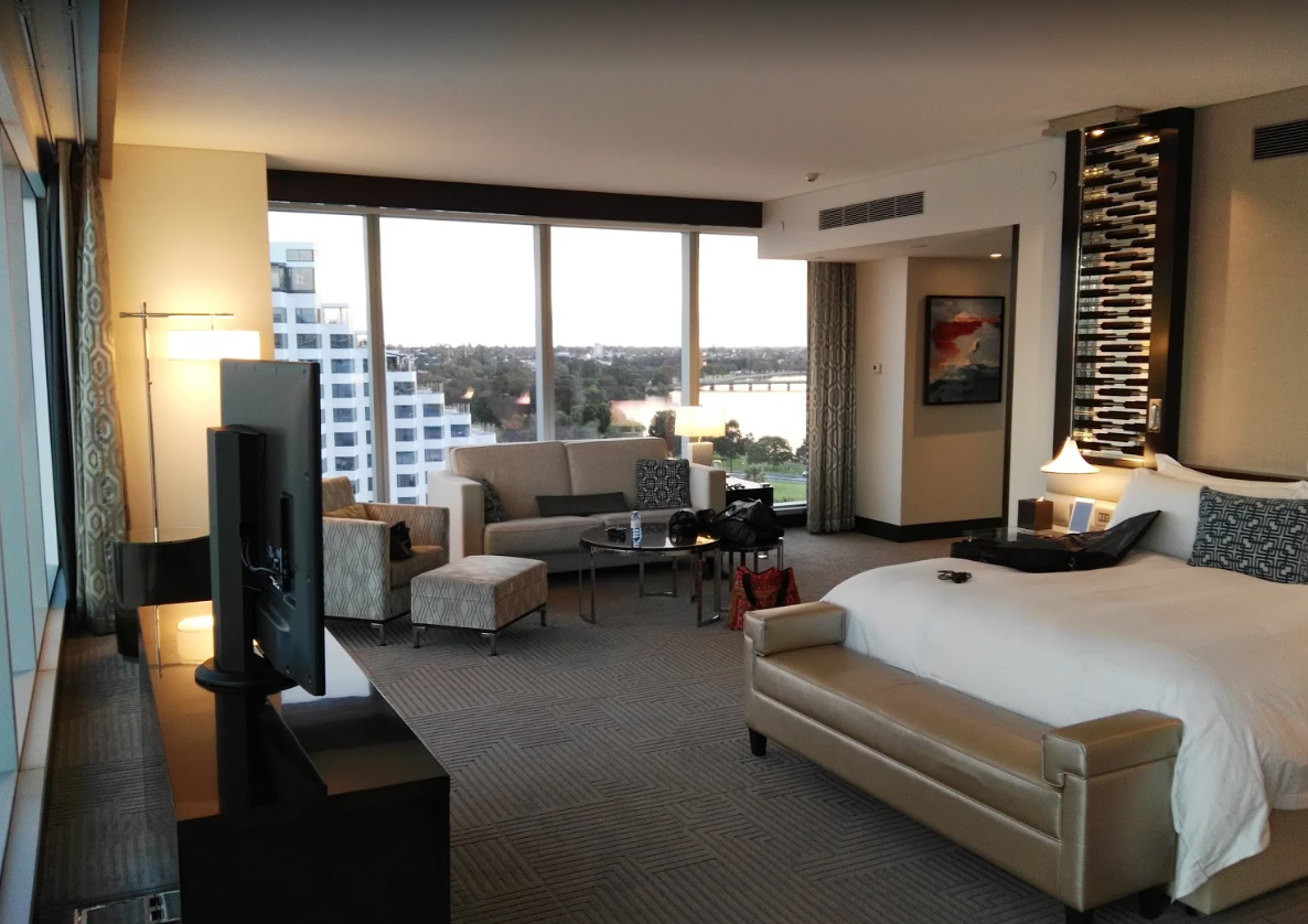 호텔 크라운 타워스 퍼스(Crown Towers Perth)는 정말 특별한 곳이에요. 이곳에 들어서면 우선 화려한 로비와 현대적인 인테리어가 눈에 띄는데, 고급스러운 분위기가 여행의 시작부터 기분 좋게 만들어줍니다. 객실에 들어가면 넓고 세련된 공간이 펼쳐지는데, 큰 창문을 통해 스완 강이나 퍼스의 멋진 도시 경관을 한눈에 감상할 수 있어요. 특히 일몰 시간에 창 밖으로 보이는 풍경은 정말 아름답답니다.