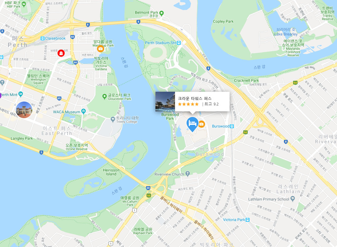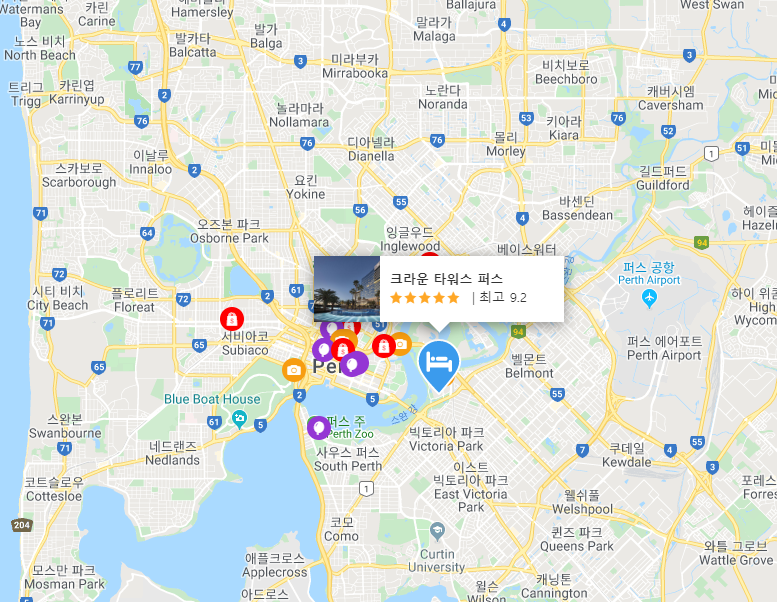 크라운 타워스 퍼스(Crown Towers Perth)는 퍼스 관광 혹은 비즈니스 출장에도 훌륭한 선택입니다. 본 숙소는 도심에서 단 2 km 거리에 있어 쉽게 이동할 수 있으며, 공항까지는 보통 20분 정도 소요됩니다. 본 숙소는 도시의 필수 관광 명소에 손쉽게 접근할 수 있는 편리한 위치를 자랑합니다.