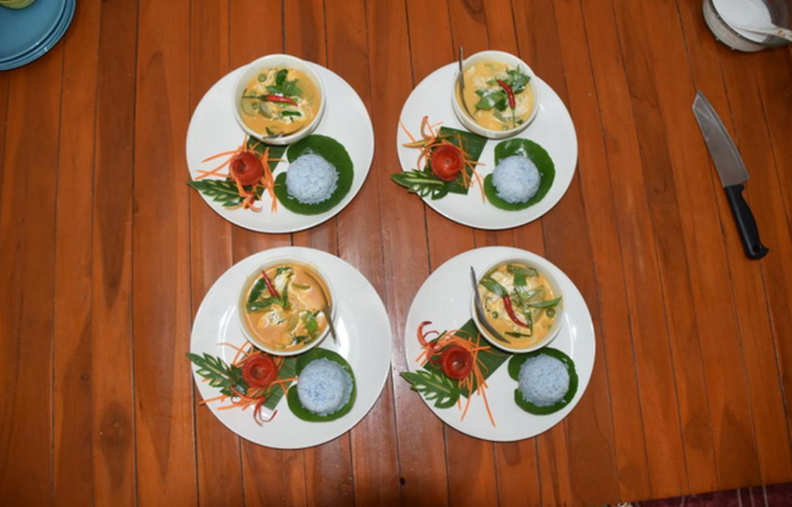 똠양궁(매운 허브 향 새우스프), 똠카까이(갈랑갈과 레몬그라스를 넣은 코코넛 치킨 스프), 그린 & 레드 커리 등 다양한 태국 레시피를 전수 받아 보세요. ~~ 카놈 끌루어이(찐 바나나 케이크), 부아로이, 끌루어이 부앗치 같은 디저트도 만들어 보실 수 있으며, 요리가 끝나면 함께 모여 직접 만든 요리를 맛보실 수 있습니다.