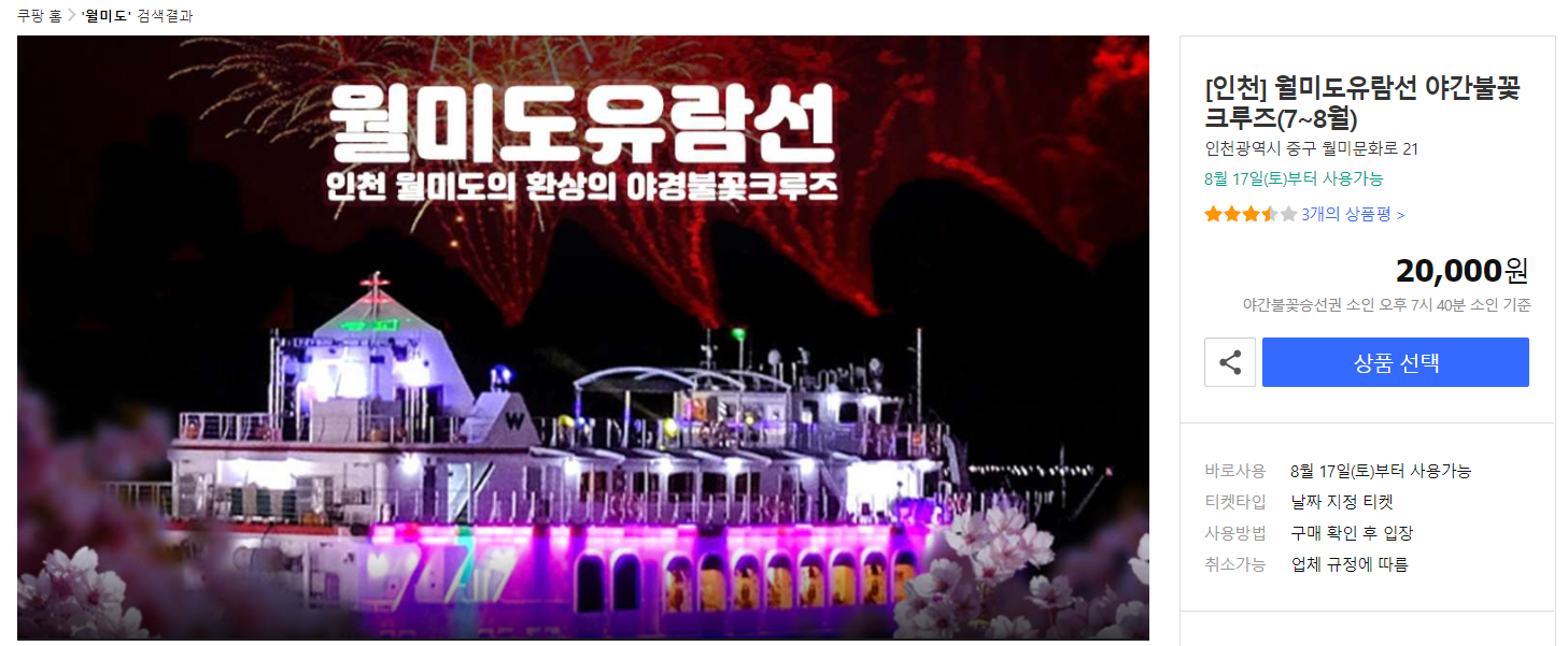 쿠팡! | [인천] 월미도유람선 야간불꽃크루즈(7~8월)