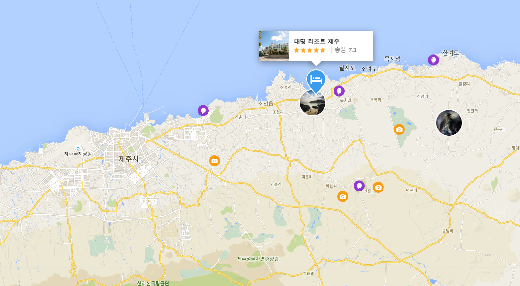 비즈니스 및 레저 여행 모두를 충족시킬 수 있는 대명 리조트 제주 (Daemyung Resort Jeju)소노벨 제주 호텔(SONO BELLE JEJU)는 도시에서 가장 유명한 지역 중 하나인 조천에 있습니다. 도심에서 단 20Km 거리에 있는 소노벨 제주 호텔(SONO BELLE JEJU)은 투숙객이 빠르고 쉽게 지역의 많은 명소들을 즐길 수 있는 위치적 이점이 있습니다. 함덕 해수욕장, 북촌돌하루방공원, 불사리 탑사 등에 인접함과 깨끗한 환경은 소노벨 제주 호텔(SONO BELLE JEJU)이 갖는 특별한 매력입니다.