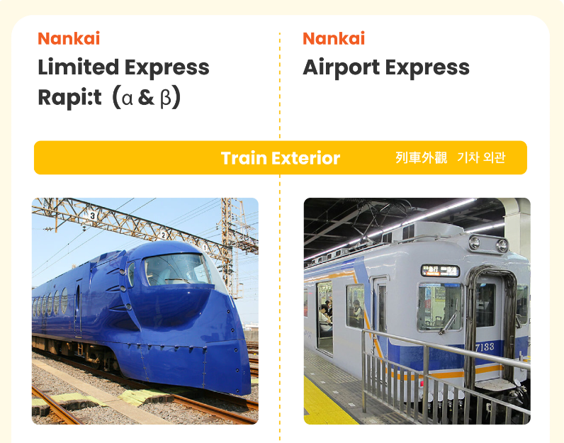 Rapi:t β 열차는 기시와다(KISHIWADA) 역과 사카이(SAKAI) 역에서 정차합니다. Rapi:t α 열차는 정차하지 않으니 참고해주세요.