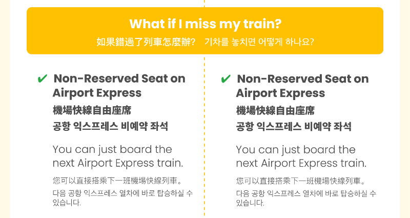 지정한 시간대의 열차를 놓쳤을 경우 다음 열차를 탑승할 수 있지만, 좌석 재예약은 불가합니다.