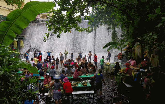 오후에는 현지에서 유명한 폭포 레스토랑 뷔페로 가 점심식사를 합니다. 인공 폭포 부근 레스토랑에 도착해 느긋하게 쉬고 계시다가 곧이어 제공되는 맛있는 요리를 마음껏 드셔보세요. ~ 주말에 이스쿠데로를 방문하시면 기존 액티비티와 더불어 필리핀 전통추모가 음악공연도 관람할 수 있습니다.
