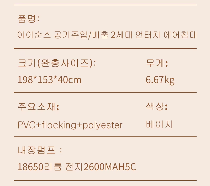 캠핑용으로 좋은 아이순스 더블 에어침대
