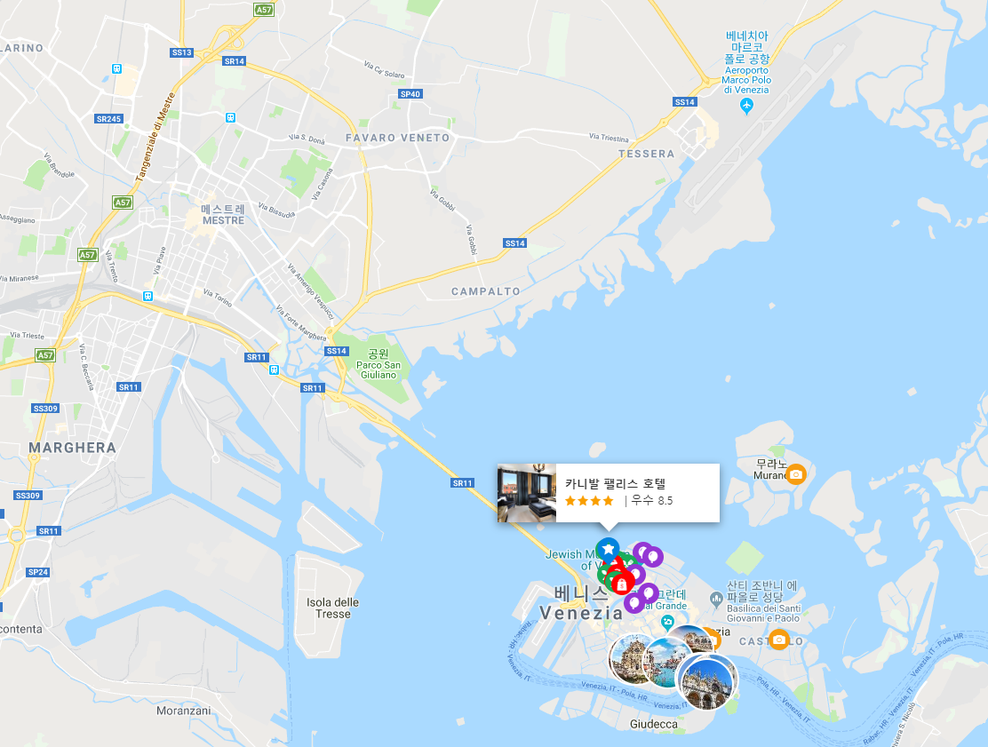 산타 루치아역에서 호텔까지 이동하는 방법은 맨아래쪽 후기를 참고하시면 좋을 것 같습니다. 숙소 위생상태도 좋고, 시설이 잘 되어 있어 부모님을 모시고 가시거나, 누구와 함께여도 불편함없이 여행하 실 수 있는 베네치아(베니스) 본섬 카니발 팰리스 호텔입니다. 호텔을 중심으로 왼쪽으로는 관광 중심지로 이동할 수 있고, 오른쪽으로는 다른 섬들로 이동이 편리합니다.
