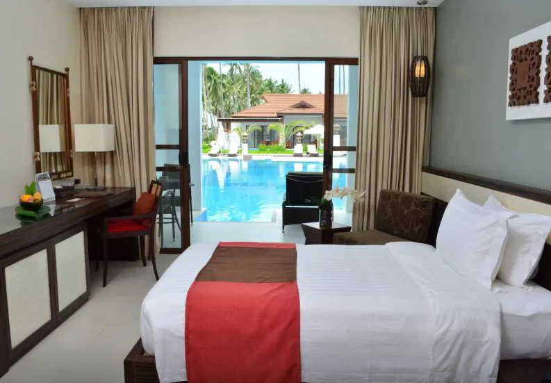 숙소 위치나 뷰는 마음에 들었습니다. 가족여행에 좋을거 같아요. 아쉬운게 있다면 냉장고가 좀 지저분했어요. 그치만 서비스 면에선 만족합니다. 트라이시클도 불러주고, 비행기 시간 체크해서 탈 수 있는 셔틀도 고지해주었어요. 외부에서 과일 사온것도 친절하게 깎아주었어요.