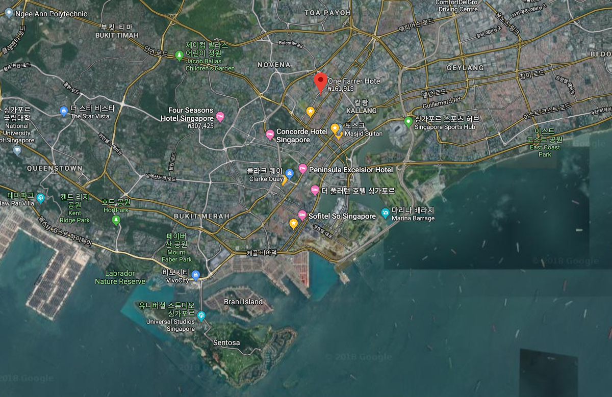 메인 관광지와 떨어져 있는 위치라 걱정을 많이 했지만 싱가폴이 지하철이 워낙 빠르고 잘되있고 Farrer park 지하철역 A출구에서 비안맞고 도보1분거리라 매우 만족스러웠습니다. 마리나베이,클락키,부기스,에스플레네이드 등 주요 관광지가 대부분 지하철 10분 정도 거리였고 센토사도 환승없이 여섯정거장이라 매우 좋았습니다. 수영장도 매우 만족스러웠고 처음에 체크인할때 주는 웰컴드링크 쿠폰으로 수영장 선베드에서 와인을 먹었습니다. 하루에 2,3번씩 방 청소를 해주고 매일매일 공짜 미니바를 채워줘서 잘먹었습니다. 한가지 아쉬웠던 점은 정오쯤 체크인을 할때 프론트 직원이 불친절하더군요. 제말은 제대로 듣지도 않고 안된다고 안된다고 하고 twin bed 신청하지도 않았는데 네가 신청해서 바꿔줄수없다고 말자르고 몇가지좀 물어볼려고 했는데 얼굴 쳐다보지도 않고 단답하더군요. 말 끝에 sir, thank you만 붙인다고 친절한게 아닌데. 그것때문에 기분 상했는데 다른 스탭들은 다 친절해서 마지막날까지 기분좋게 묵었습니다. 이정도 서비스와 룸퀄리티를 싱가폴에서 이 가격에 찾기 쉽지 않을것같습니다. 비싼 호텔이 부담되시는 분들게 추천합니다.