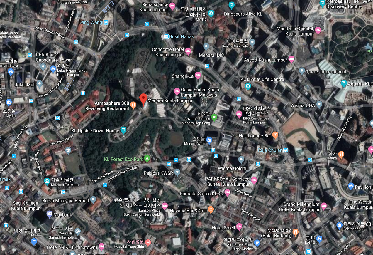 높이 421m 의 쿠알라룸푸르 KL타워전망대는 세계에서 7번째로 높은 건물로 쿠알라룸푸르를 여행하신다면 꼭 가봐야하는 쿠알라룸푸르여행필수코스입니다. KL타워전망대 276m 높이에 위치한 KL타워 실내 전망대는 360도 전망을 자랑하며 쿠알라룸푸르의 전경을 두눈 가득 담으실 수 있습니다.