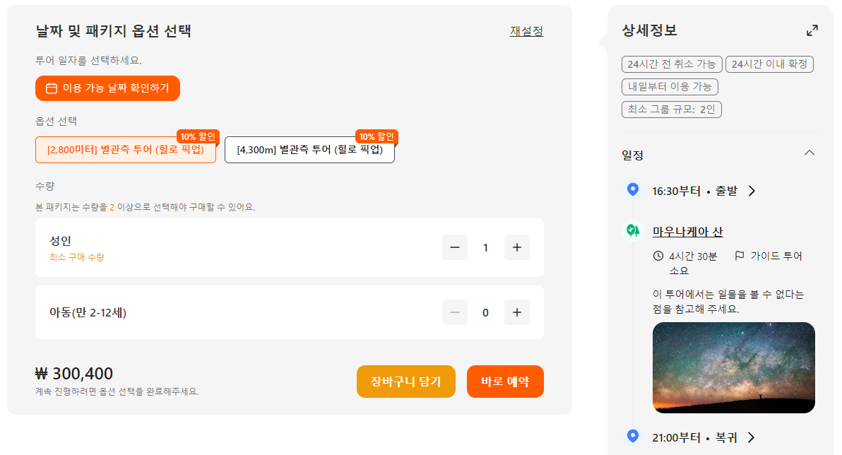 하와이 마우나 케아 별 관찰 투어는 클룩사이트에서 쉽게 예약하실 수 있으며, 이메일, 전화번호, 카카오톡, 네이버, 구글, 애플, 페이스복 등으로 간편하게 회원가입하고 이용하실 수 있습니다. 가격은 변동될 수 있으므로 예약시 다시 확인하고 이용하세요~