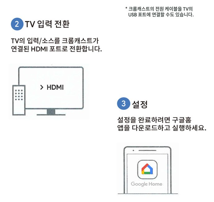 2 Google Home을 사용하여 TV에서 캐스팅하려면, Google Home, 크롬캐스트, 그리고 호환되는 컨텐츠가 필요합니다.