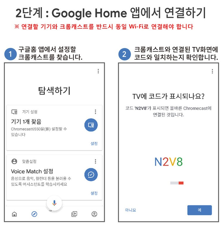 Chromecast와 Google Home이 있으면 가능합니다.