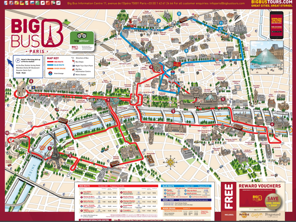 파리 빅버스투어의 장점은 파리의 관광지를 순회하는 버스인 만큼, 매번 이동교통편을 알아보지 않아도 되고, 관광지 정류장에서 무제한 승하차가 가능한 티켓으로 파리여행예산도 절약하고, 온라인으로 미리예약하면 더욱 할인된 금액에 이용하실 수 있는, 파리여행에 효율적인 쿠폰북도 제공하고, 파리시내를 2층버스에서 구경할수 있는 등 파리여행을 하신다면 여러모로 좋은 파리여행필수품, 파리 빅버스 시티투어버스 티켓입니다.