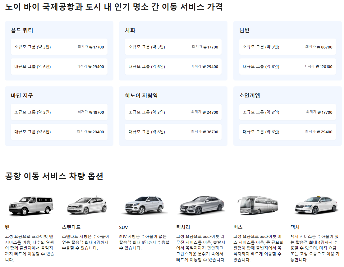 하노이 노이바이국제공항에서 하노이시내호텔 이동서비스