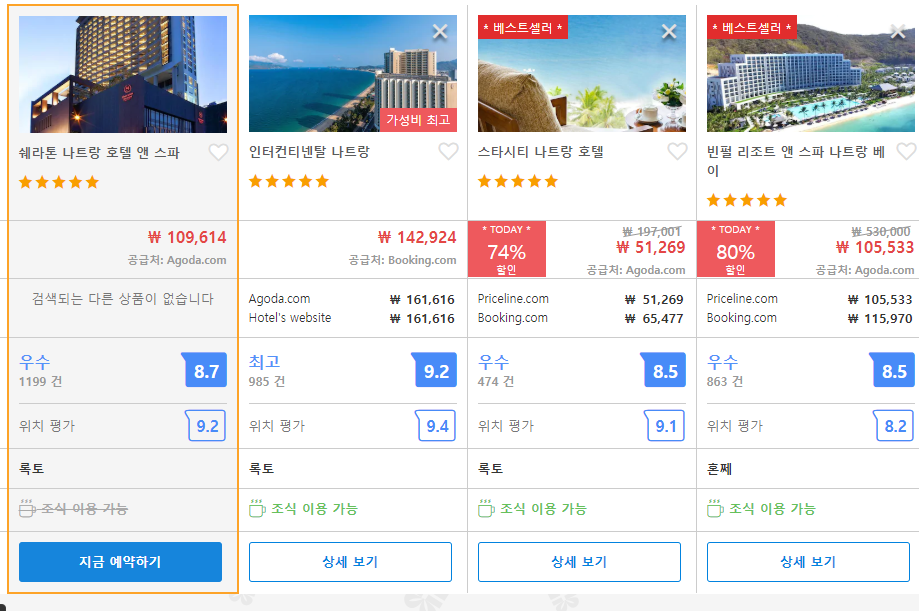 쉐라톤나트랑호텔 앤 스파의 최저 가격대는 아고다에서 할인특가 가격으로 매일매일 변동되며 10만원대부터 다양하게 형성됩니다. 아고다 최저가를 확인하시려면 아래 링크를 누르시면 원하는 날짜의 가격대를 자세히 보실 수 있습니다.