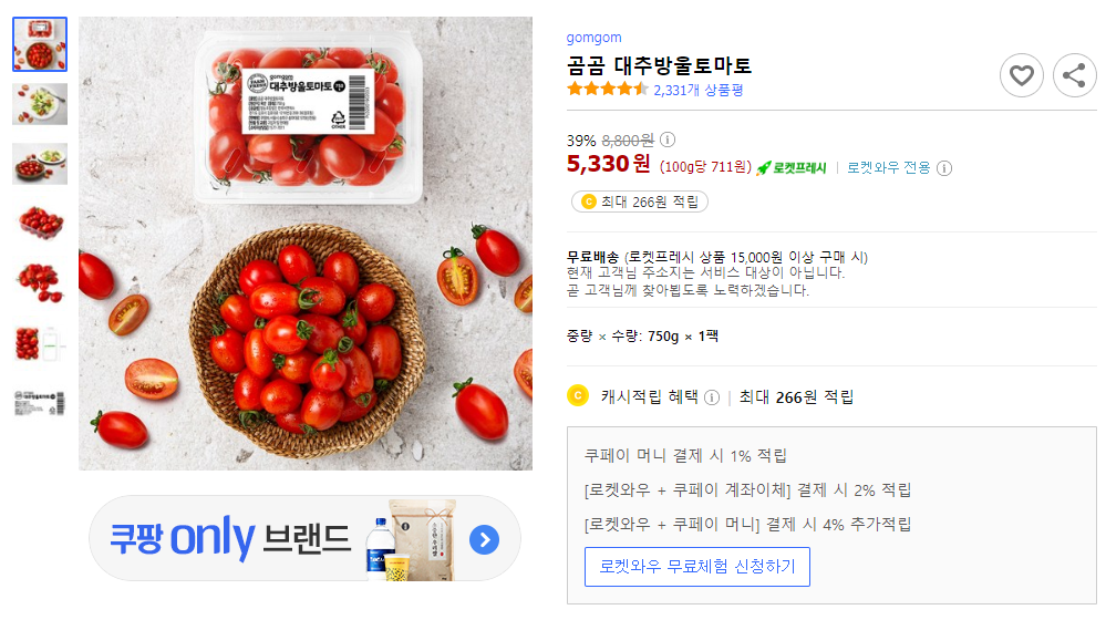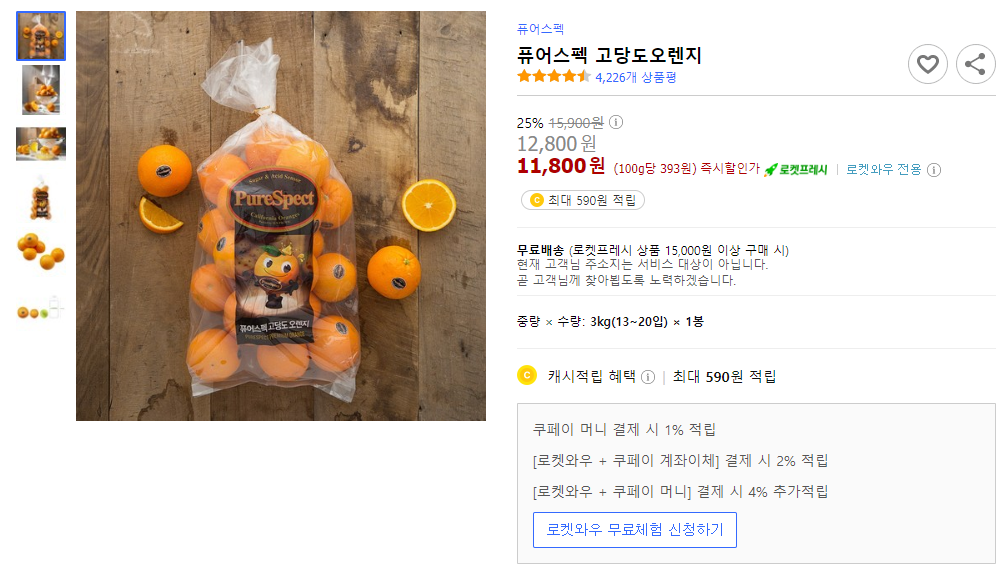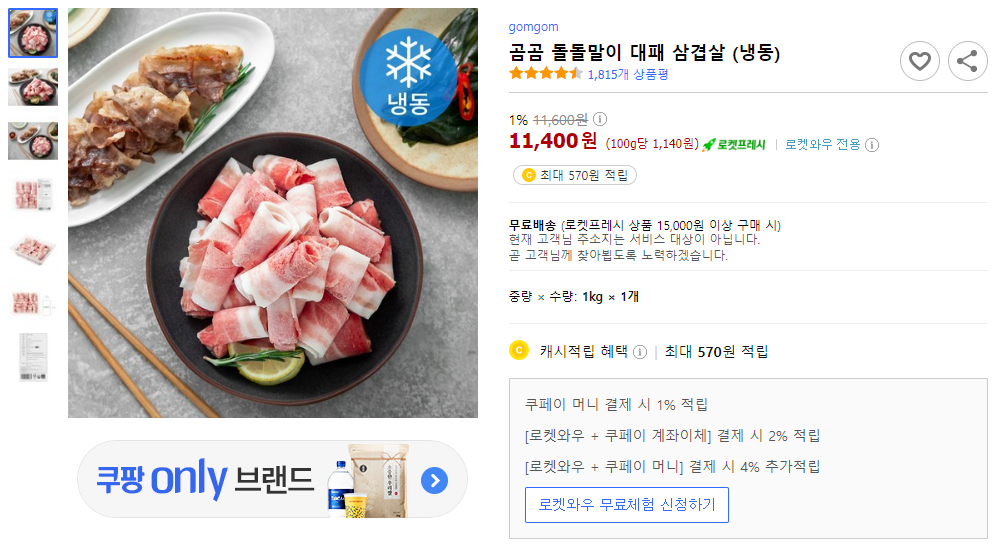 로켓프레시와 로켓직구제품은 100% 무료배송 정책 적용대상이 아니므로