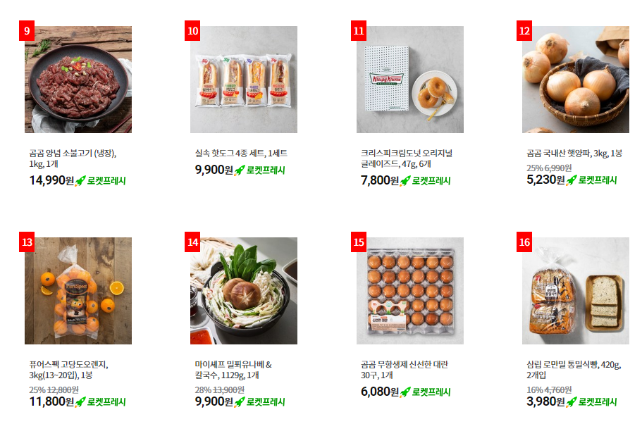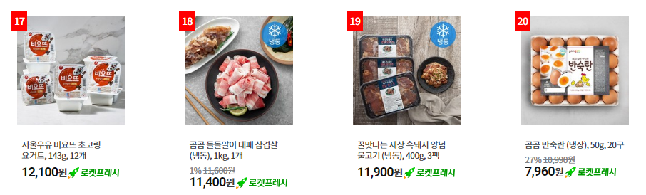 쿠팡// 쿠팡의 로켓와우회원전용 로켓프레시 인기제품 best 20