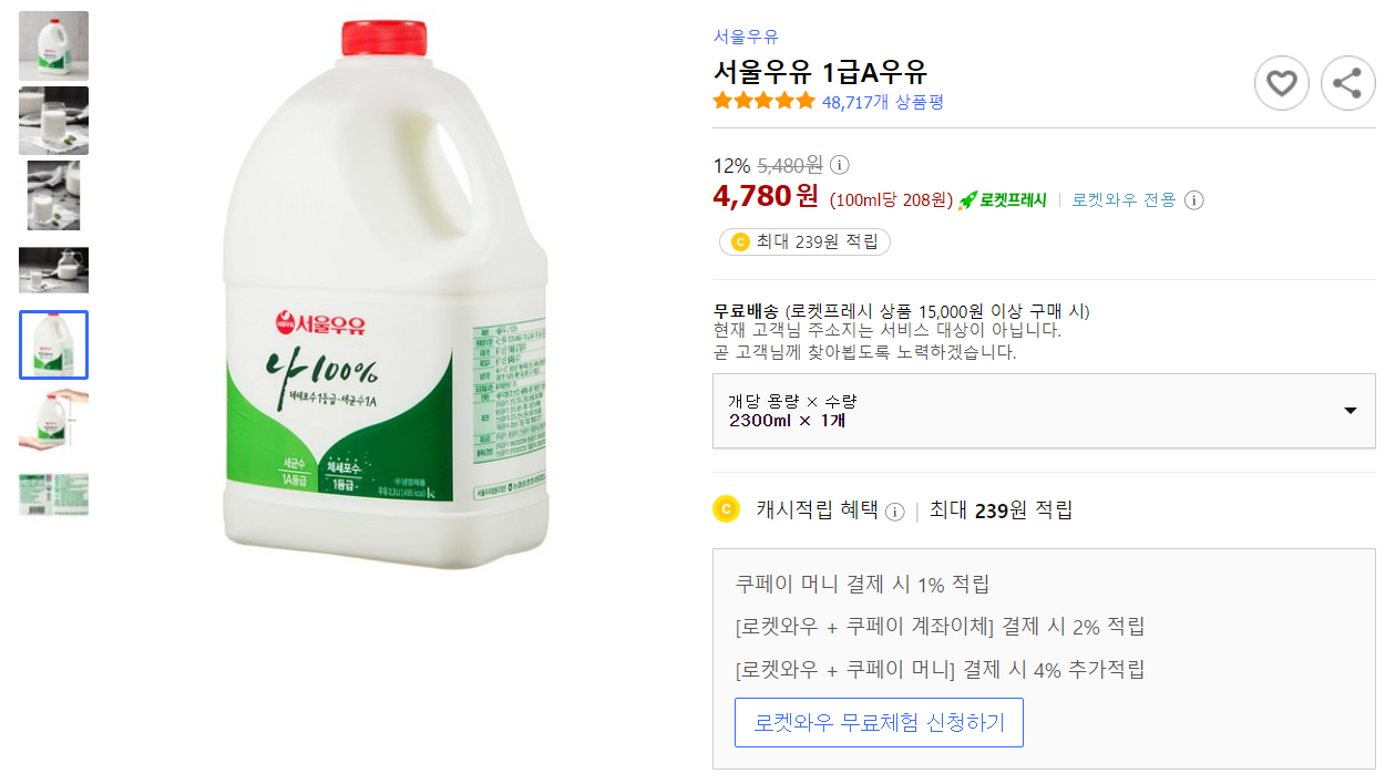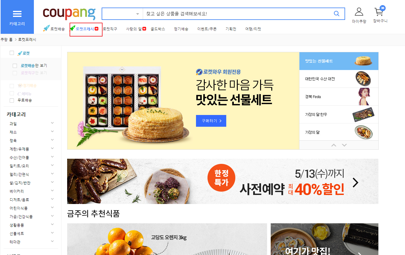 쿠팡의 로켓와우 멤버십 회원은 로켓프레시 신선식품 새벽배송이 가능하며