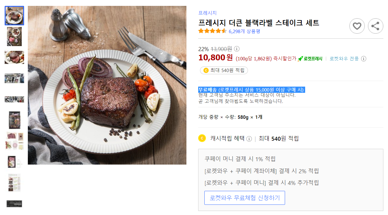 무료배송 (로켓프레시 상품 15,000원 이상 구매 시)