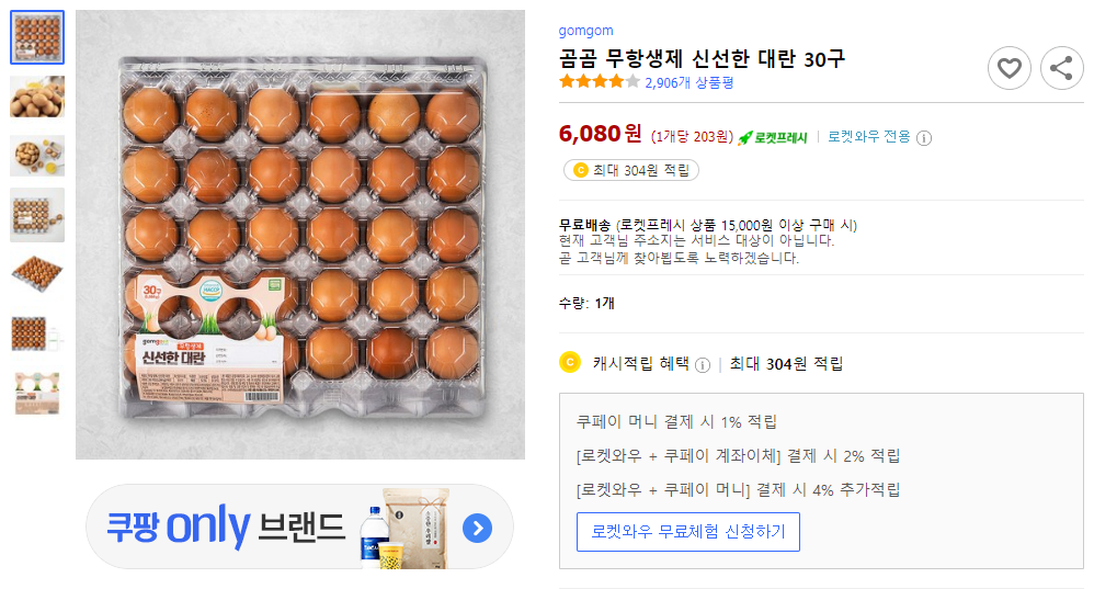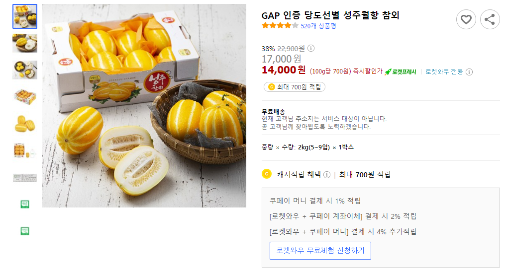 로켓프레시, 로켓직구는 100% 무료배송 정책 적용 대상이 아닙니다.