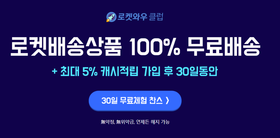 쿠팡 로켓와우 클럽 멤버쉽 30일 무료체험