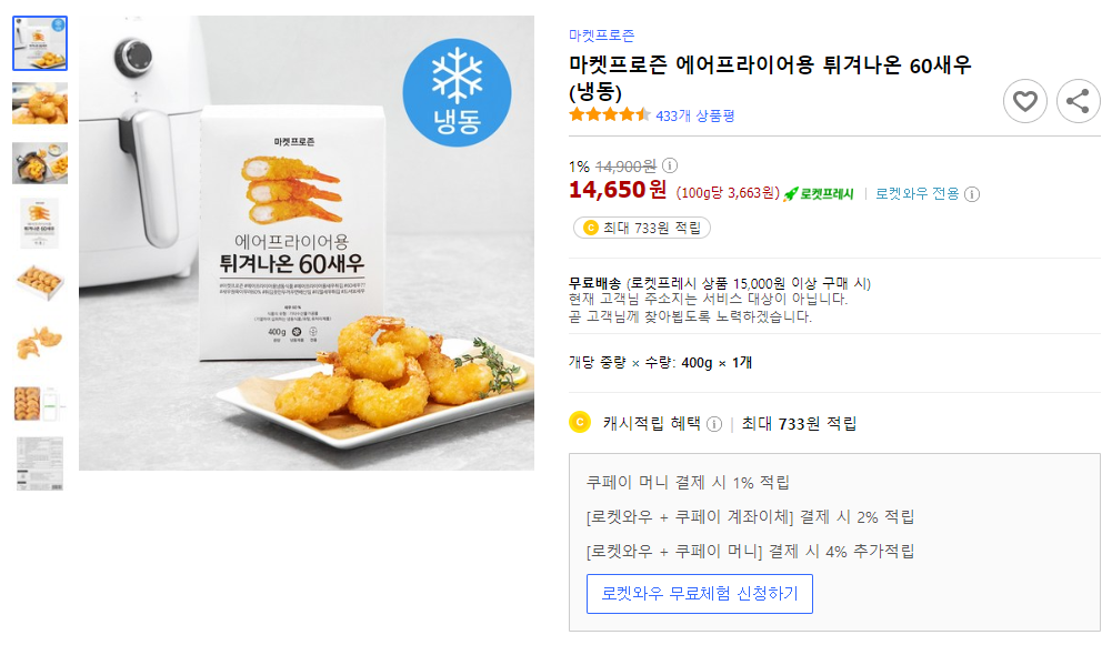 마켓프로즌 에어프라이어용 튀겨나온 60새우