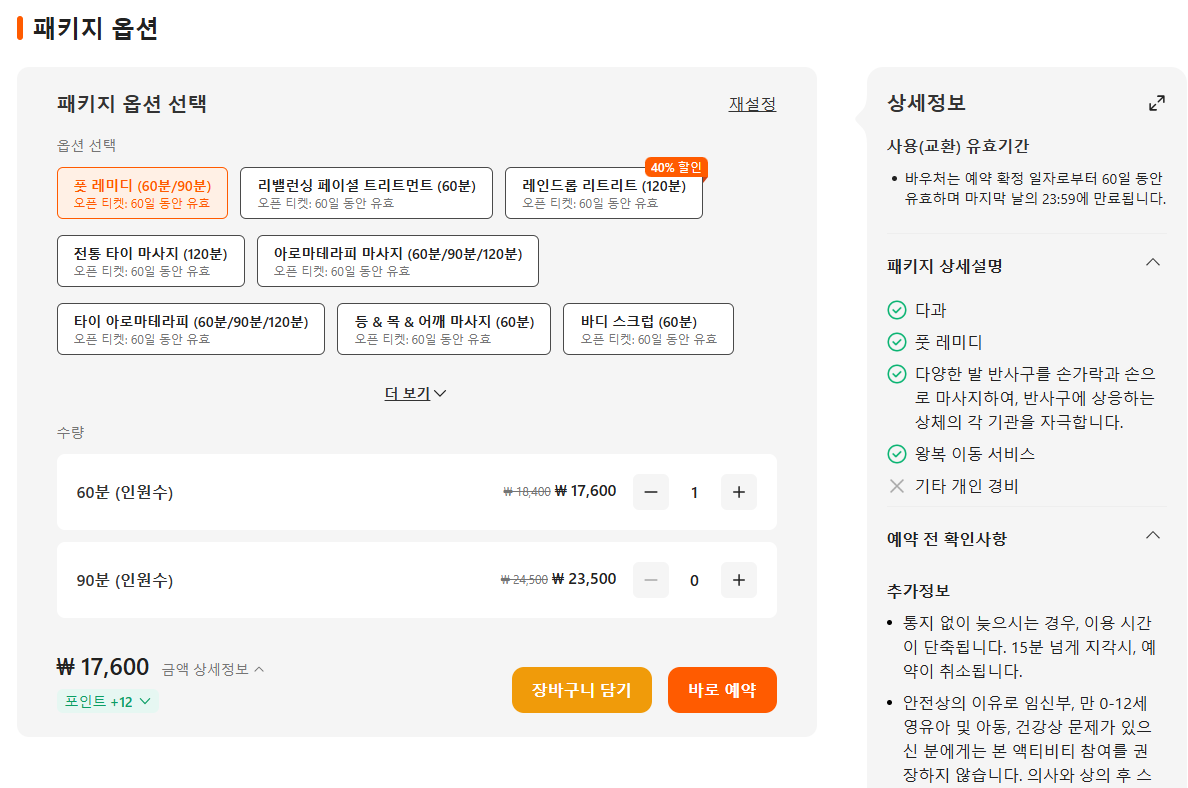 끄라비 라다롬 스파 태국마사지는 클룩사이트에서 쉽게 예약하실 수 있으며, 이메일, 전화번호, 카카오톡, 네이버, 구글, 애플, 페이스복 등으로 간편하게 회원가입하고 이용하실 수 있습니다. 가격은 변동될 수 있으므로 예약시 다시 확인하고 이용하세요~