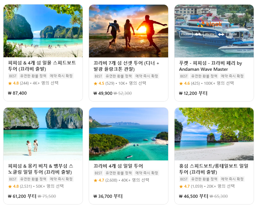 | 끄라비관광 / 끄라비여행의 아름다운 바다를 스피드 보트로 즐기며 피피섬과 다양한 명소 즐기기 (0) | 2024.10.21 |