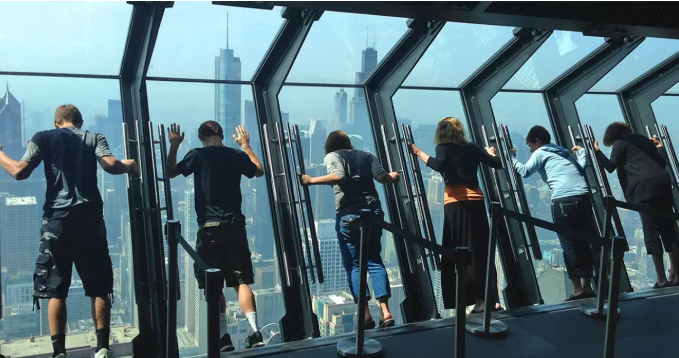시카고 360 전망대에서 놓쳐서는 안될 하이라이트는 TILT 라고 불리는 유리 전망대입니다. 유리 전망대에 기대어 발밑으로 아찔한 시카고의 풍경을 바라보는 스릴 넘치는 체험을 하실 수 있습니다. 조금 무섭기는 하지만 절대 잊을 수 없는 추억이 될 것입니다.