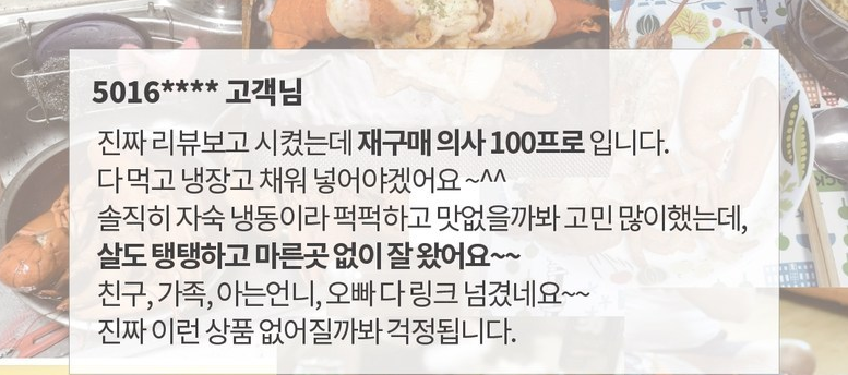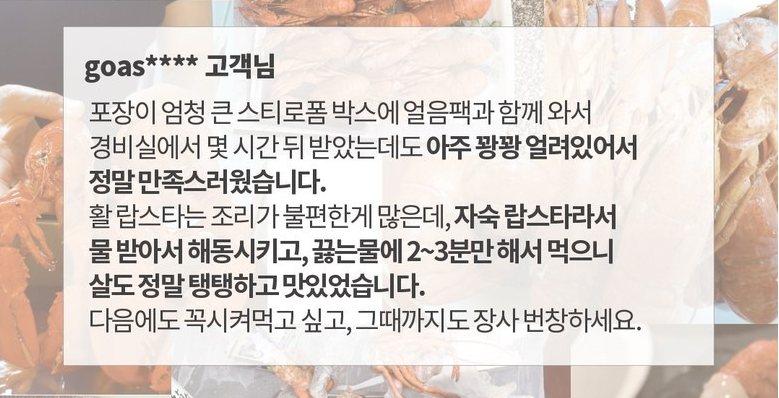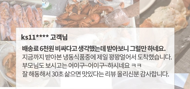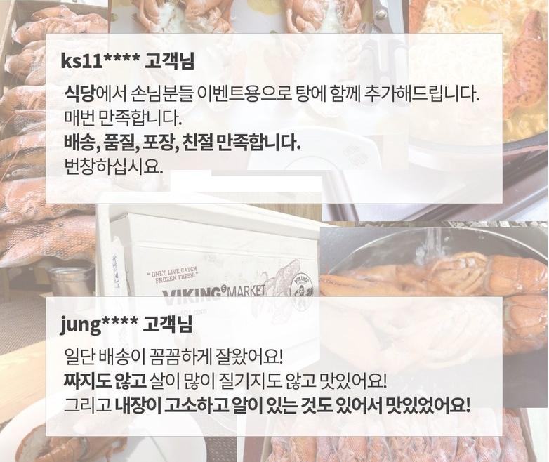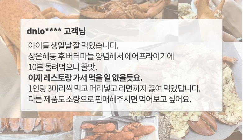 인정받은 품질의 가성비 최고의 랍스터 상품 입니다.