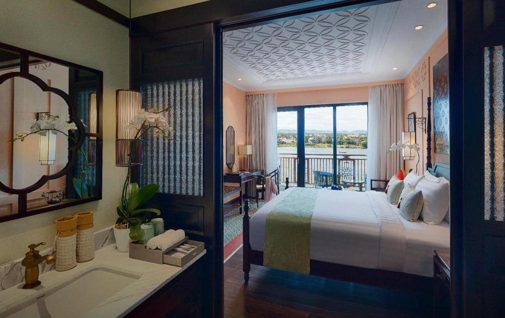 객실은 현대적인 디자인과 전통적인 베트남의 요소가 잘 어우러져 있어서, 들어서는 순간부터 아늑함이 느껴져요. 넓은 창문으로 들어오는 자연광 덕분에 밝고 환한 분위기가 가득하고, 강을 바라보며 여유롭게 아침을 맞이할 수 있어요. 각 객실은 세심하게 꾸며져 있어, 편안한 침대와 고급스러운 욕실이 마련되어 있어요. 정말 휴식하기 좋은 환경이에요.