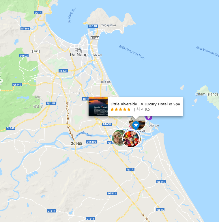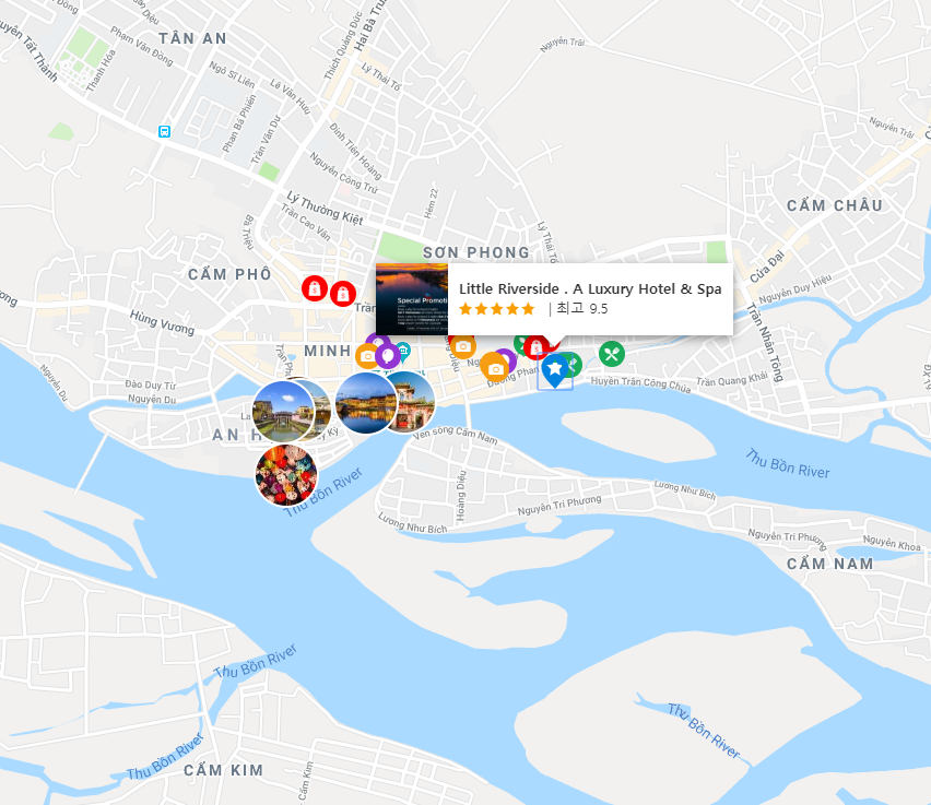 호이안의 볼거리와 사운드를 즐기고 싶다면 본 숙소(리틀 리버사이드 - 어 럭셔리 호텔 앤 스파)는 탁월한 선택입니다. 본 숙소는 도심에서 단 0.5 Km 거리에 있어 쉽게 이동할 수 있으며, 공항까지는 보통 45분 정도 소요됩니다. 본 숙소는 도시의 필수 관광 명소에 손쉽게 접근할 수 있는 편리한 위치를 자랑합니다.
