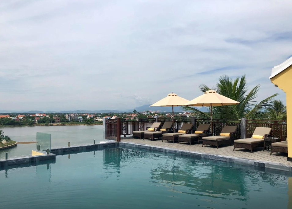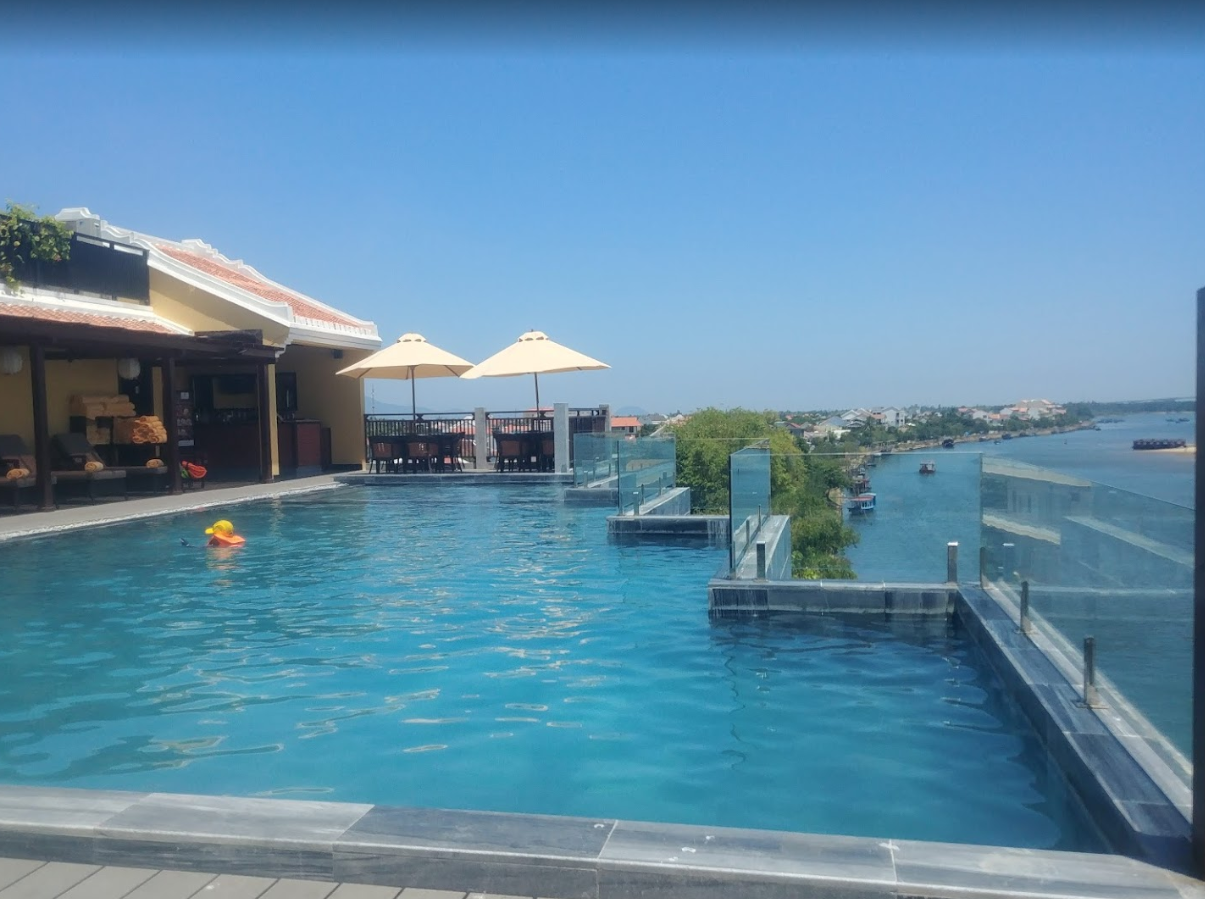 루프탑의 수영장도 예쁘고 수심은 1.5m 정도입니다. 올드타운까지 걸어다니기도 좋고 야경도 아름다워 호이안을 여행하며 숙박하시면 편안하게 호이안여행하시기 좋습니다. 호텔 자체는 아담하지만 엔틱한 인테리어도 좋고 객실내 소품 하나하나 아기자기하고 마음에 드는 호이안 리틀리버사이드 럭셔리 호텔입니다.