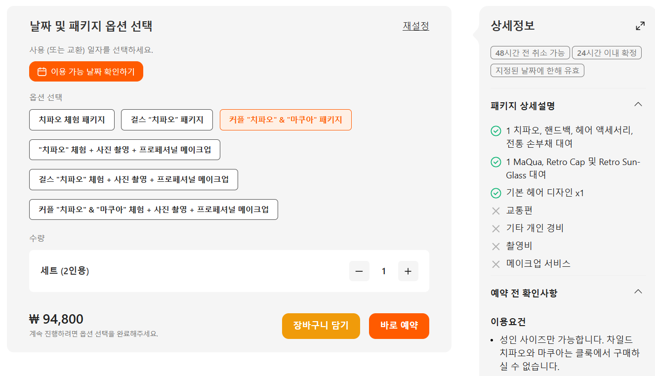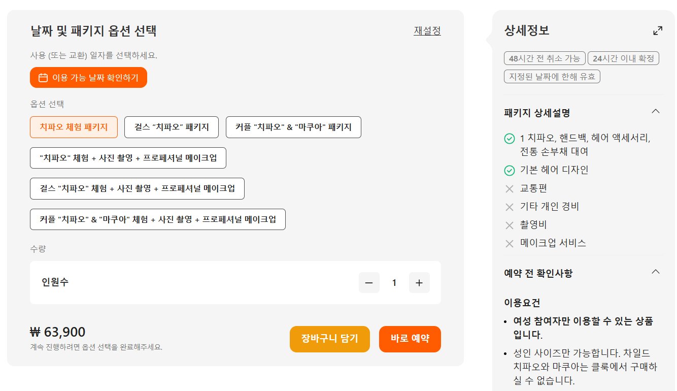 치파오 체험 패키지 포함사항 예시