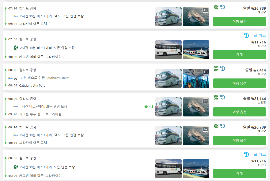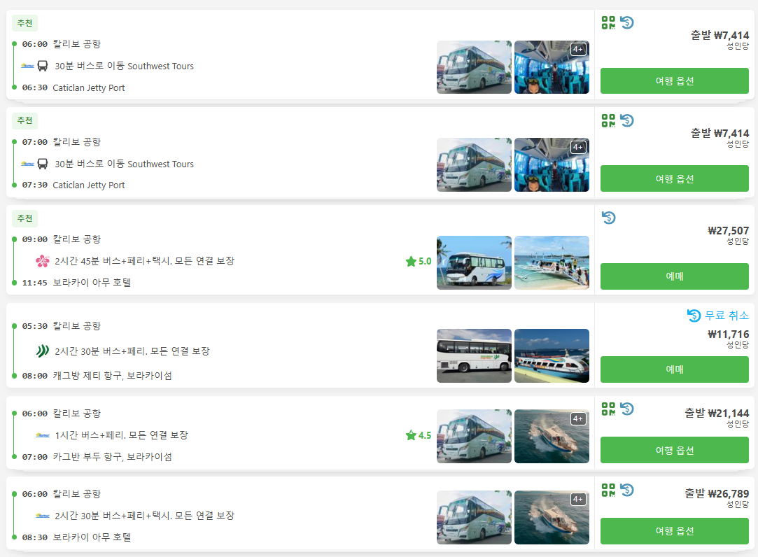 칼리보공항에서 보라카이섬 내 호텔로 이동하는 교통편 노선정보 및 예약은 12go사이트에서 예약하실 수 있으며, 이 노선 뿐만아니라 나라전역의 노선, 나라간 노선의 검색가능한 모든 교통편을 검색하고 예약하실 수 있습니다. 한국어로 검색해보시고 나오지 않으면 영어로 검색하시면 보다 쉽게 노선을 확인하실 수 있습니다.