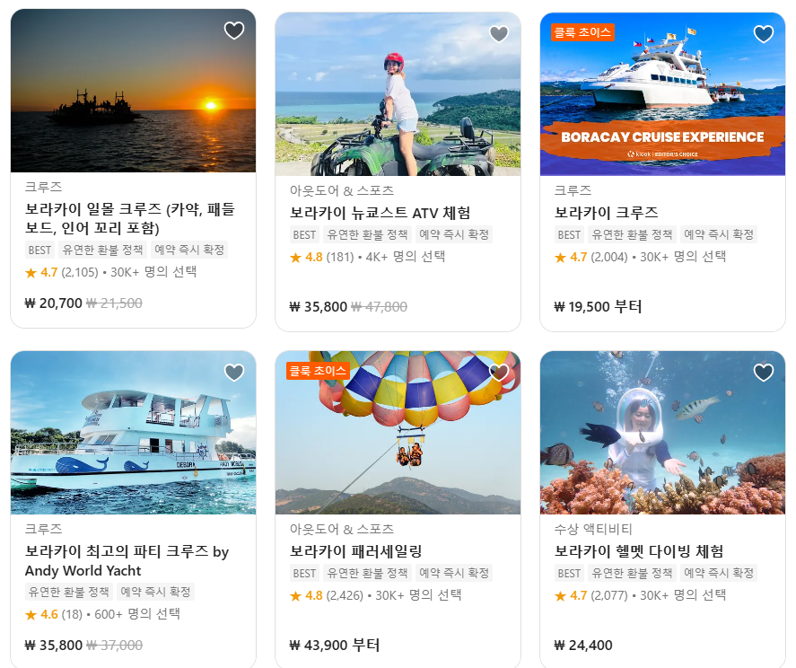 보라카이 항공편을 예약하셨다면 한국에서 출발하여 칼리보공항에서 내려 택시 또는 버스를 타고 까띠끌란 선착장으로 이동하여 페리를 타고 보라카이섬 선착장으로 이동하여 다시 택시, 버스 등을 타고 호텔까지 이동해야 합니다. 요금은 2~3만원대로, 호텔까지 이동이 아닌 항구이동 등은 조금 더 저렴하게 이용하실 수 있습니다.